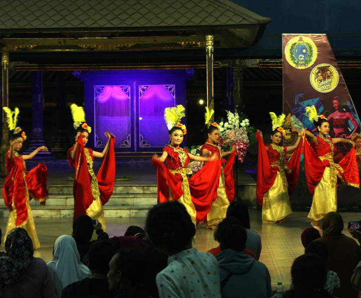 Senin (1/9) malam ini, pentas seni tari “Sekaten Art Festival 2025” berlanjut di malam keempat dengan sajian karya-karya tari kreasi baru, selain klasik aset kraton yang disajikan Sanggar Pawiyatan Beksa Kraton Mataram Surakarta. Sementara itu, keramaian pasar malam berupa jasa hiburan dan dagang aneka produk di kompleks Pendapa Pagelaran dan di kompleks Masjid Agung, juga masih berlanjut. (won-i1)