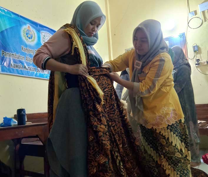 “Yang menjadi modelnya bergantian, berarti ada 8 orang. Agar banyak yang tadinya melihat praktik kursus, kemudian merasakan dan mencermati saat berdandan di bawah arahan instruktur (guru pelatih). Ternyata, 4 orang peserta sudah cukup bisa memahami urutan praktiknya. Dua kali pertemuan ternyata cukup. Kemahiran akan didapat ketika sering praktik tata-busana nanti,” ujar KRRA Panembahan Didik Singonagoro.