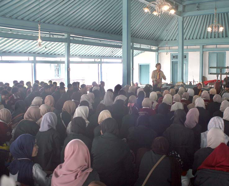 Saat dua pustakawan dan sejumlah pemandu wisata menerima kedatangan 250-an mahasiswa Prodi Sejarah UIN Sunan Ampul (Surabaya), tampak juga Gusti Moeng dan KGPH Hangabehi serta sejumlah pejabat jajaran Bebadan Kabinet 2004 melintas untuk tugas masing-masing. Termasuk KGPH Hangabehi yang habis melepas Dr Ir Iskandar Yasin, Dekan Fakultas Teknik (FT) Universitas Sarjana Wiyata Taman Siswa (UST) Jogja.