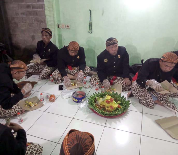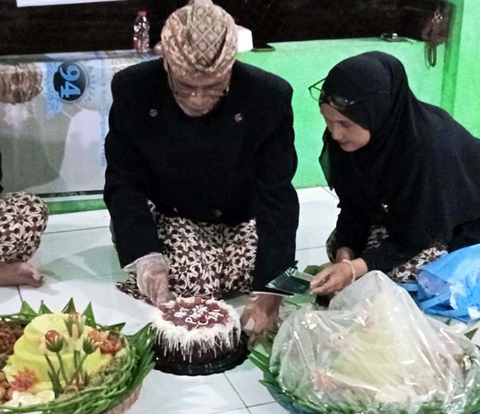 Selesai doa, lalu dilakukan potong kue ultah ke-94 oleh KRRA Panembahan Didik yang dibagikan kepada anggota tertua dan termuda. Setelah itu dilanjutkan dengan potong nasi tumpeng utama berukuran besar. Setelah penyerahan potongan kue dan nasi tumpeng, dilanjutkan dengan santap bersama menikmati nasi tumpeng yang cukup diwadahi kertas dan dimakan dengan gaya tradisional yang dikenal dengan “dipuluk”.