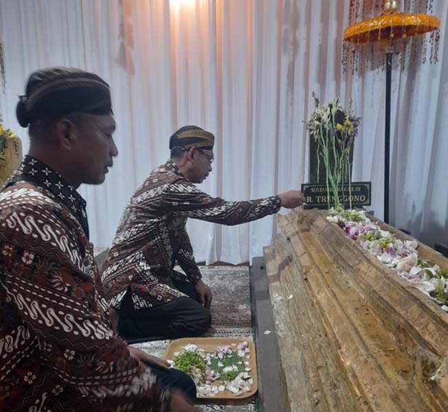 Dua mobil rombongan datang lebih dulu, karena mendapat tugas “nyadran” di makam Sultan Trenggana dan Raden Patah (Sultan Alamsyah Akbar). Doa, tahlil dan dzikir, syahadat Quresh serta shalawat Sultanagungan dipimpin abdi-dalem juru-suranata RT Irawan Wijaya, sebelum KP Siswantodiningrat memulai tabur bunga di dalam “cungkup”.