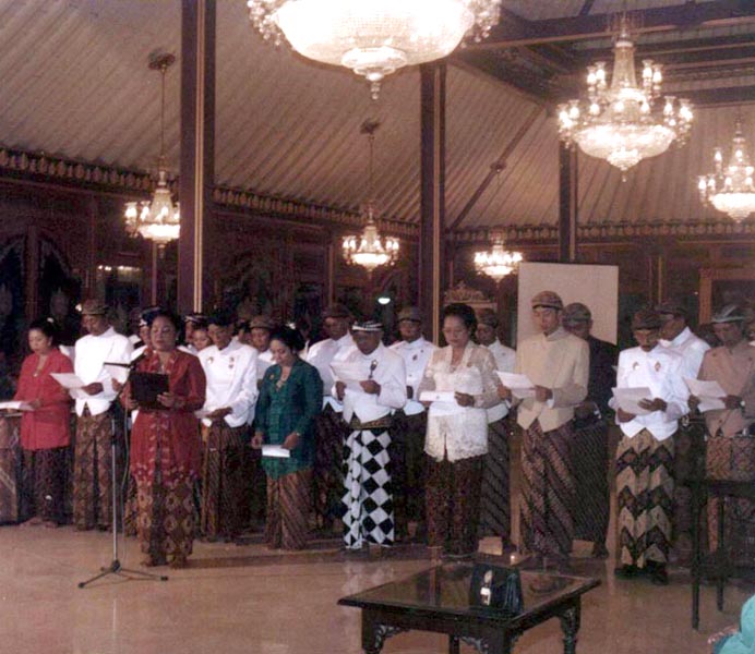 Kini, dalam masa transisi pergantian kepemimpinan, susunan kabinet juga menyertai. Gusti Moeng (Pengageng Sasana Wilapa/Pangarsa LDA) sudah menegaskan, “Bebadan Kabinet 2004” terus bekerja menjadi kabinet Sinuhun PB XIV Hangabehi. Penegasan itu disampaikan GKR Wandansari Koes Moertiyah menjawab pertanyaan para wartawan.