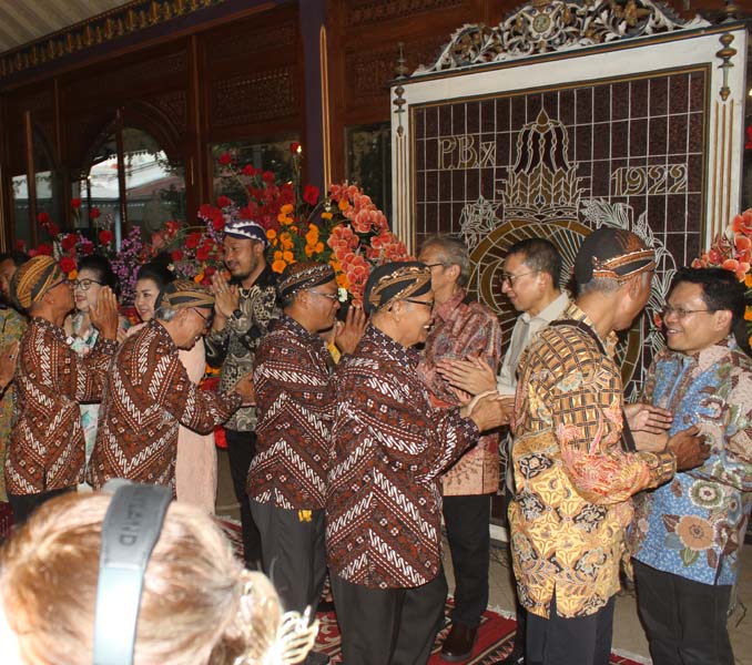 Selesai pidato, kedua tokoh itu berada di depan berjejer dengan Gusti Moeng dan Sinuhun PB XIV Hangabehi, GKR Ayu Koes Indriyah bahkan tampak juga GRAy Putri Purnaningrum dan suami. Di saat itulah semua yang hadir diberi kesempatan untuk bersalaman bergiliran, bermaaf-maafan. Di saat itulah, hujan deras tiba agak lama, hingga saat ada sesi wawancara nyaris tak terdengar penjelasan dua tokoh itu.