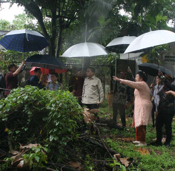 Rombongan menteri tiba disambut beberapa tokoh tuan rumah di kompleks Pendapa Pagelaran Sasana Sumewa. Menteri dan rombongan di antaranya Dirjen Perlindungan Budaya dan Tradisi Dr Restu Gunawan diajak melihat dari dekat bangunan demi bangunan yang ada di kompleks itu, yang rata-rata sudah mulai kusam bahkan rusak. Termasuk Pendapa Sitinggil Lor yang terdiri beberapa bangunan yang sudah rusak pula.