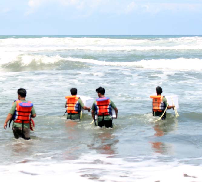 “Ini ‘Labuhan’ rutin yang selalu dilakukan kraton pada hari kerja. Jadi, tidak terbatas pada hari weton tertentu. Maka, dilakukan pada hari dan jam kerja. Tidak boleh Minggu, dan sebelum jam 12.00 harus selesai. Berbeda dengan Labuhan gedhe (besar-Red), yang harus mencari hari dan weton pasaran tertentu. Karena, yang dilabuh barang-barang kategori yang diganti secara rutin,” ujar Gusti Moeng.